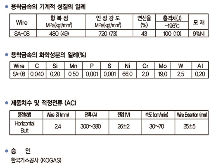 ① 9%Ni강에 사용되는 Horizontal Butt 용접용 SAW 용접 재료 입니다.